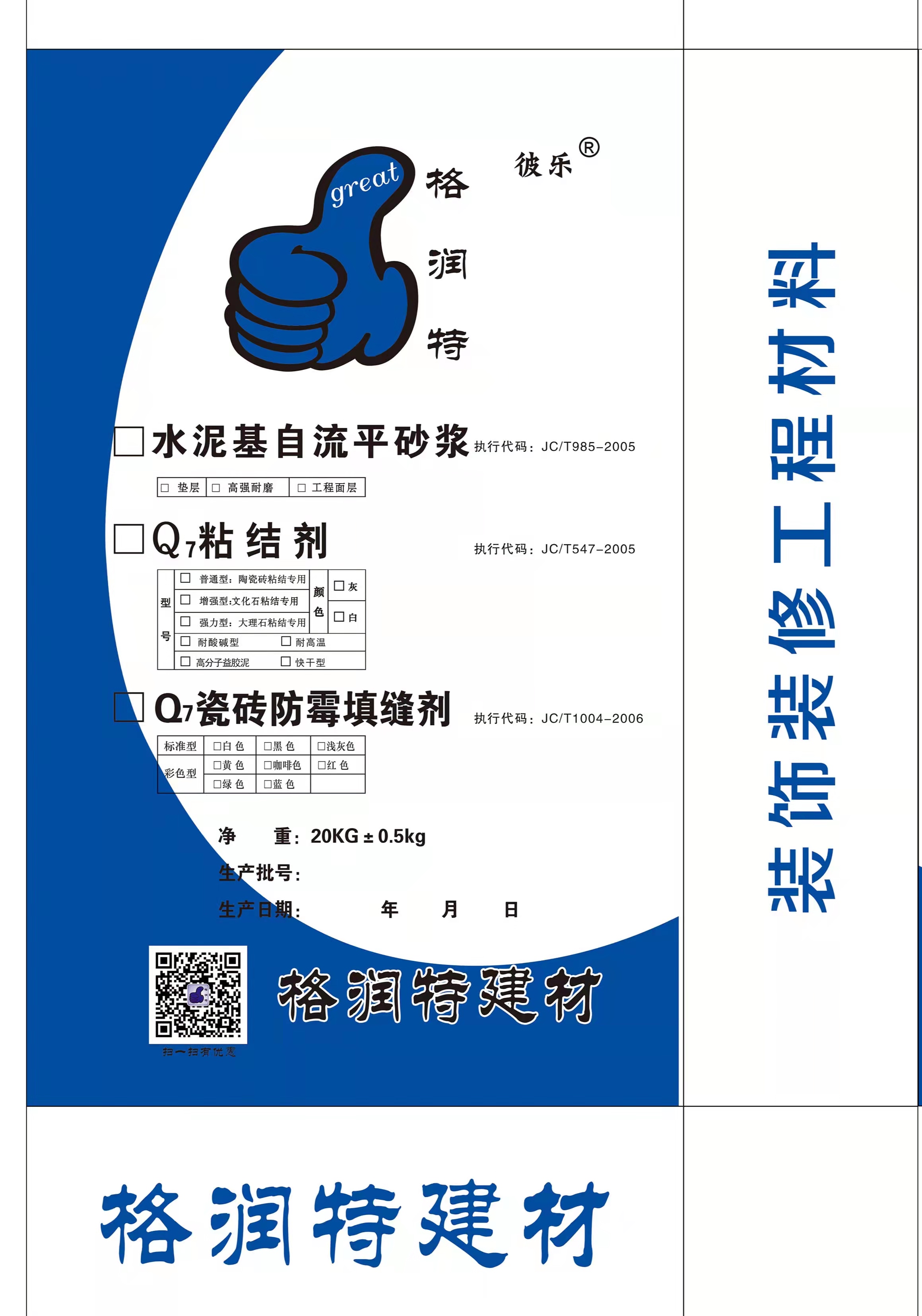 普通型: Q7型陶瓷磚粘結(jié)劑,適用于室內(nèi)、外墻及地面粘貼陶瓷磚,亦可用于防水卷材抹面保護(hù)層。